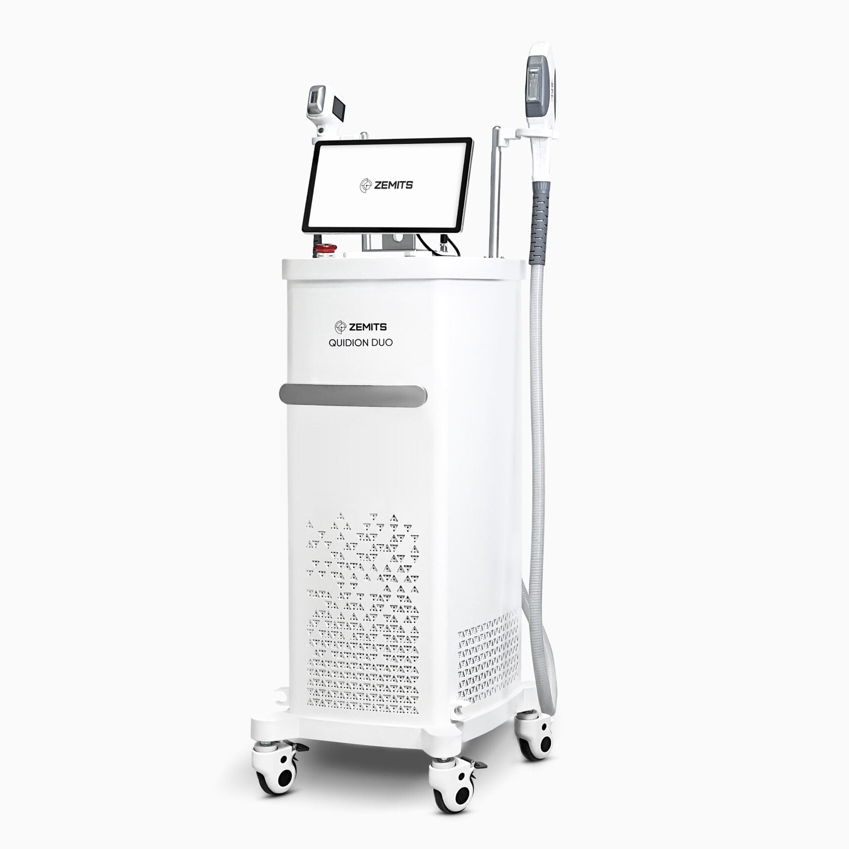 The Zemits Quidion Duo is a premium 2‑in‑1 aesthetic laser platform that integrates: